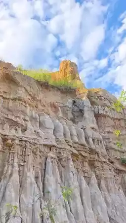 Langbapu Earth Forest (32 km from Hujiaotan): Drone shoot the "pyramid"-shaped earth forest cluster and marvel at the billion-year wind erosion masterpiece.