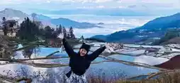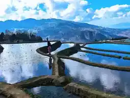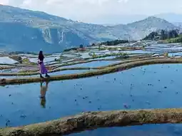 Aicun: Blue terraces~ The first few pictures of the pink skirt. Aicun is far away, you have to keep driving up. The feature is that you can go down to the field, but if the owner is there, he will charge a 5 yuan field fee. The key point is to go down to the field, some fields are actually very soft, a bit like stepping on cotton, plus the drop of the terraces, it's like walking on a single-plank bridge, feeling that I'm about to fall off On the way back, we passed Jingkou, and felt that Jingkou could actually go down to the field, the effect should be good if the weather is good, and Jingkou has a large area, you can try it.