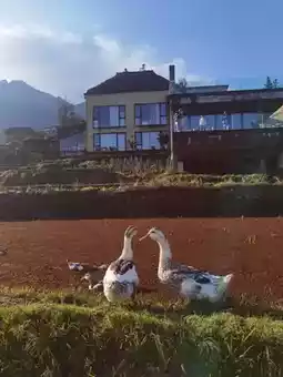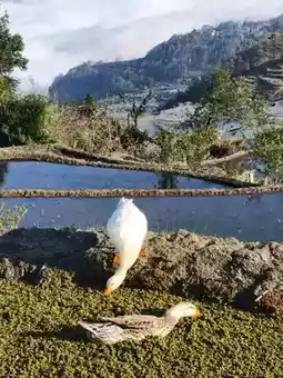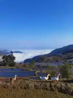 I highly recommend this hotel; every day when you open your eyes, it's like a painting. Today, I was healed by the little ducks on the ridges. The kids wore the Hani costumes provided by the hotel (elaborately made, very new and of great quality), walked among the terraces, ate farmhouse meals on the mushroom roofs of the ancient village, watched the roosters in the village fight, and saw the elderly village women in traditional attire doing embroidery. In the morning, a cup of coffee while looking at the sea of clouds close at hand, and in the afternoon, a pot of tea, resting and reading in the clouds. Both coffee and tea are provided free by the hotel. While we were lingering and marveling at this place, the local villagers were also very envious of us coming from Beijing. Perhaps it is precisely because of the fast-paced life in the big city that we can better appreciate this kind of relaxation and comfort.