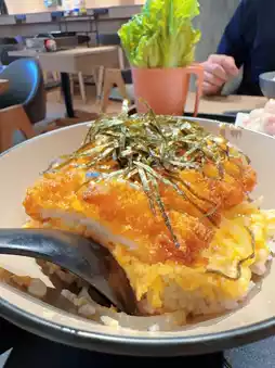 Scrambled Egg Gillette Pork Chop Donburi This is really super delicious, crispy on the outside and soft on the inside Freshly fried 👍🏻 Fragrant and crispy, every bite of rice paired with scrambled egg together is simply perfect, eat until I keep saying delicious 😋