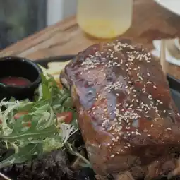 Three large pieces of pork ribs with salad 🥗 and French fries 🍟, the portion is quite big, and it is very easy to cut all the pieces of meat 😚, the meat is tender and not dry, and full of gravy, even the cartilage 🦴 is very chewy, so far it is the softest pork ribs I have ever eaten 🤩, cost-effective, must-try recommendation 👍🏻.