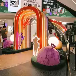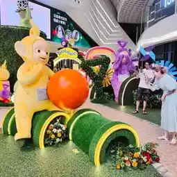 From July 15 to August 31, 2023, the Summer Baby Search | Teletubbies x YOHO MALL | Theme Installation was set up at YOHO MALL 1 atrium and on the floors of YOHO MALLI. Four of the Teletubbies will appear at the nearly 2,500-square-foot "Summer Baby Hunt" in the mall with a height of nearly 3 meters, and will be hidden in eight fantasy scene photo spots at "Jumbo Magic Island", including the 2.5-meter-high "Treasure Hunt Magnifier", "Mysterious Water Pipe Flower", "Phantom Hat Cave", "The Window of the Small World", "Treasure Window", "Treasure Window" Michael's "Rainbow Rhapsody Stage" and "Colorful Light and Shadow Tunnel", etc.