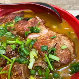 The pork belly is like dice, thick and moderately fat and lean, with more meat than fat. It tastes quite soft and not too tough.
