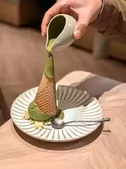 For dessert, I ordered the signature Uji Matcha cone, which looked very pretty. It also comes with a fragrant matcha sauce, which not only adds a sense of ritual but also makes the taste richer.