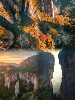 The Scissor Peak in the scenic area looks different from different angles, very strange, the Da Long Quan waterfall in the deep has a drop of 197 meters, it is one of the four famous waterfalls in China