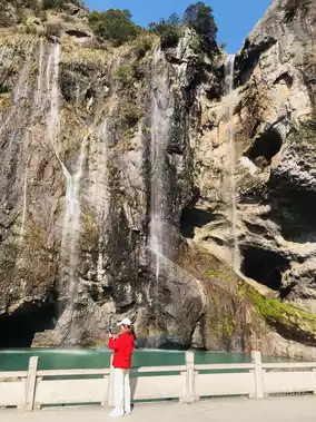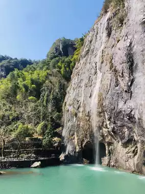 The height of the Scattered Water Cliff is about 60 meters, and the width is about 30 meters. From a distance, the Scattered Water Cliff is like a white silk ribbon, fluttering between the mountains. When you approach the Scattered Water Cliff, you will hear the rumbling of water, like thousands of horses galloping past, which is refreshing.