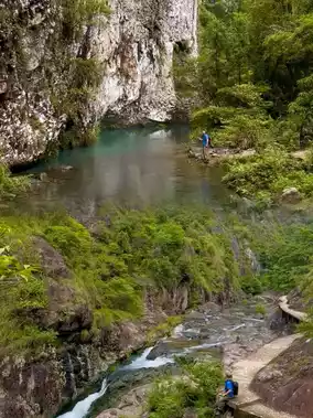 The entire hiking route takes about 2-3 hours. There are mountains, peaks, ridges, valleys, streams, waterfalls, pools, and lakes. It's a pristine forest with no signal!
