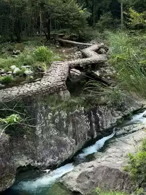 Jinzhujian Stream in Wenzhou is a gentle and long hiking route, an extension of Jinxi Stream in Dalongqiu. Hiking across the mountains and along the stream, you can see 18 pools, shoals, canyons, and plank roads.