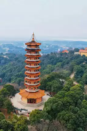-The halls of Sheng'an Temple are erected in succession, majestic and spectacular. The entire temple is nestled against the mountain and by the water, overlooking Nanhu Lake and Dongting Lake, with a panoramic view of Yueyang city, making it a great sightseeing spot.
