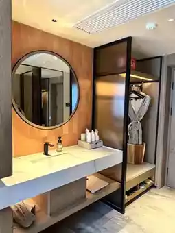 I didn’t expect the check-in to be so convenient. The reception area is perfect for photos. Despite being in the city center, it’s a quiet oasis with a full chill vibe. The interior features wood tones and a minimalist, high-end design—just the Japanese wabi-sabi style I love 📸