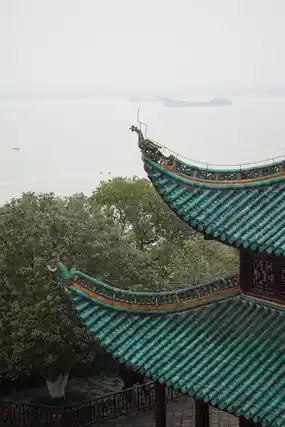 Standing atop the three-story eaves, one can gaze down upon the vast expanse of Dongting Lake, China's second-largest freshwater lake. In spring, the waters are as turquoise as the sky; in autumn, the colors stretch across the vast expanse. In misty rain, Junshan Island, like a green snail on a silver plate, looms, creating a poetic and picturesque scene. 📚