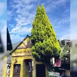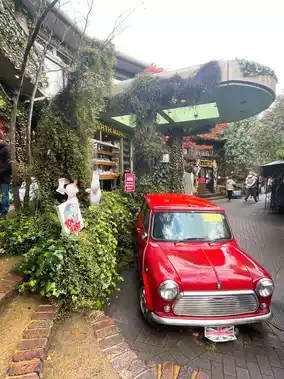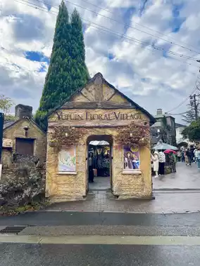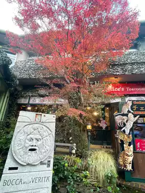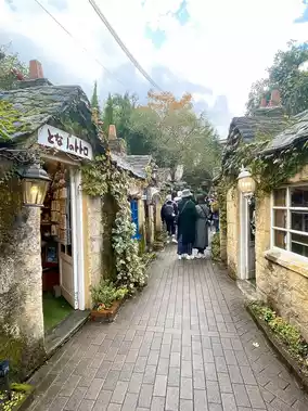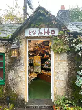 On either side of the cute narrow streets are souvenir shops, a Ghibli shop, and Owl Forest.