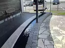 Everyone is taking pictures in front of Yufuin Station, practically a photo spot. Haha. The Yufuin Bus Terminal is also nearby, making it convenient to take both trains and buses. Haha.