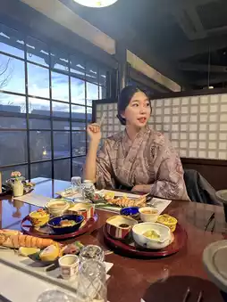 It is located a 10-minute walk from Yufuin Station, and the staff was very kind, so I had a really dreamlike and happy time during my two-day stay. For the two-day kaiseki dinner and breakfast, they served different menus instead of the same food, so I didn't get tired of it and enjoyed it in a different way. The Yufudake view public bath was really love, and personally, I really enjoyed using the hot springs thanks to the private bath in the room that can be used 24 hours a day. Personally, I really like the family bath 4. The bathtub is made of stone, so the bubbles come up, and it feels like a high-class spa, and it's private because we're the only ones using it, so it was really nice.