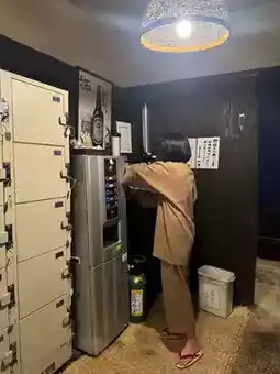 There is a vending machine for tea, coffee and beer at all times, and there is a private natural onsen bath, separated for men and women, with five more shower rooms.