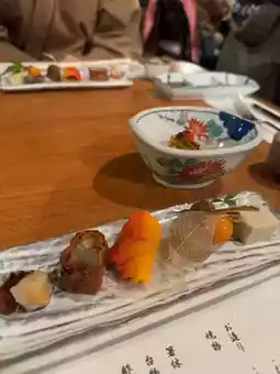 Dinner is served in Kaiseki or Kaiseki Ryori style, a set of dishes served one course at a time, in the traditional Japanese way, including meticulous selection of seasonal ingredients, preparation and cooking methods. Good ingredients, beautifully presented, very delicious.
