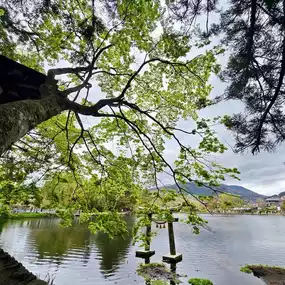 Kinrin Lake in Yufuin, Japan, is a tranquil spot famous for its misty morning views and lovely cherry blossoms in spring 🌸. Sakura trees bloom along the lake’s edge, reflecting beautifully in the calm, clear waters ✨. Surrounded by mountains and cozy cafes, it’s a peaceful escape perfect for nature walks and relaxing hanami moments.