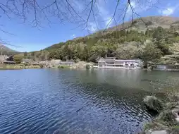 Kinrin Lake is a popular tourist spot among many Thai visitors traveling to Yufuin. Getting there is very easy. Starting from JR Yufuin Station, it's about a 30-minute walk. It might seem far, but the walk is quite enjoyable because the scenery is stunning. We visited during spring, and there were cherry blossoms and flowers along the way. There weren’t too many tourists, so it was easy to find beautiful spots around the lake to take photos.