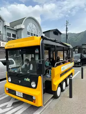 Besides walking, you can hop on Yufuin's adorable yellow tourist mini bus. This bus typically operates around Lake Kinrin and other main attractions. Its bright appearance is loved by visitors and children alike.
