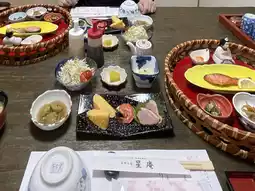 The inn includes one night two meals, the first night dinner was Japanese Wagyu Sukiyaki, the Wagyu is super plentiful and super tasty, very satisfying! The next day the breakfast was more Japanese cuisine, small plates taste OK but not that excellent, seeing some beautiful dishes look happy. The hotel actually only receives four groups of guests a day, and everyone eats at a fixed time.