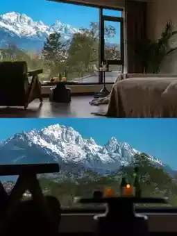 🌈 The morning sun is always particularly warm. When the first rays of sunlight shine through the curtains onto the bed, you don't need to leave the warm bed. If the weather is good, you can catch a glimpse of the stunning Yulong Snow Mountain bathed in golden sunlight. The golden light dances on the snow-capped mountains, like a mysterious veil of nature, revealing the miracle of each day.