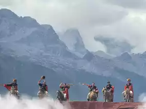 • “Tea Horse Road” Scene: Showcases the ancient tea trade route with horses and performers crossing the stage, highlighting Lijiang’s history as a trading hub.