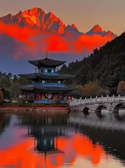 When the Jade Dragon Snow Mountain is draped in golden gauze, and the 7,000-square-meter sea of flowers in Ting Hua Gu sways in the twilight, the sky performs a magical gradient of gold and pink—this is definitely one of the top ten sunsets you must see in your life! I took 128G of photos here, enough to dominate my WeChat Moments.🥂