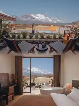 📍Prime Location: Nestled at the foot of Jade Dragon Snow Mountain, the hotel offers an unparalleled view. The straight-line distance is short, allowing you to witness the breathtaking sunrise over the golden mountain from the comfort of your bed—a true haven for those who love to relax! Adjacent to the serene and ancient Baisha Old Town, you'll experience both the vibrancy of local life and the unique charm of history. Stroll along the stone-paved streets, discover handicraft shops and unique cafes, and immerse yourself in the Naxi culture. It's pure bliss~🌆☕