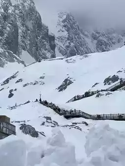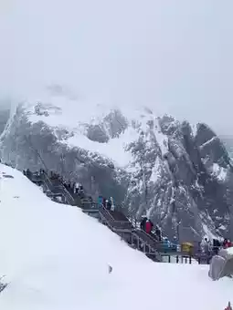 1 place you shouldn't miss when you come to Lijiang is "Jade Dragon Snow Mountain". This is considered a highlight of visiting Lijiang because this is a world-class natural tourist attraction. The view is magnificent. The mountain is covered in snow. It's so beautiful that you're enchanted.