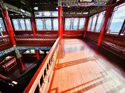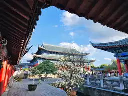 Mufu, the Tusi government office of the Mu family, originated in the Yuan Dynasty and flourished in the Ming Dynasty. The main building was built in the Ming Dynasty and rebuilt in 1988. Mufu reflects the architectural style of the Central Plains in the Ming Dynasty and also witnesses the spirit of Naxi traditional culture. The central axis building faces west and east, welcoming the rising sun and gaining wood energy. The Azure Dragon (Jade Dragon Snow Mountain) is on the left, the White Tiger (Tiger Mountain) is on the right, the Red Bird (Turtle Mountain and Snake Mountain) is in front, and the Black Tortoise (Lion Mountain) is behind. Along the central axis, Loyalty Archway, Council Hall, Wanjuan Building, Yuyin Building, Dharma Hall, Sanqing Hall, and Guojielou are built according to the terrain. On the north side is the Mu family courtyard with three courtyards. Between the two groups of buildings is a garden. Xu Xiake, a travel geographer, was invited to Lijiang by Tusi Mu Zeng. The two hit it off at first sight and had a deep relationship.