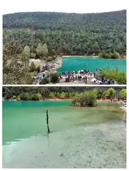 From Lijiang, you can reach the Yulong Snow Mountain Scenic Area in just an hour by bus. Blue Moon Lake, true to its name, is a stunning turquoise-colored lake.