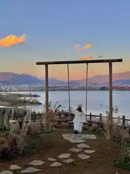 The log cabin🛖 and swing make every shot look like a masterpiece