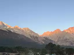 ▸ The golden glow rapidly cools into solid form! Warm light dyes the pine needles, casting emerald edges, while the bare rocks below the snowline suddenly reveal a bronze texture. The entire mountain range is forged into shape through tempering.