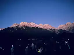▸ The crowd is tempered into obsidian in the -7°C cold wind! Frost forms on thick down jackets and knitted hats, while a forest of phone stands pierces the indigo sky. The snow-capped mountain's silhouette emerges in the icy tempering process.