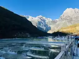 Upon entering the scenic area, you are greeted by the breathtaking sight of the snow-capped mountain reflected in the lake. The towering Jade Dragon Snow Mountain stands like a guardian, while the lake surface acts as a giant mirror, reflecting the mountains, clouds, trees, and people in stunning detail. Each lake boasts unique layers and shades—light green, turquoise, deep blue—that shift with the changing light, like a palette meticulously crafted by nature.