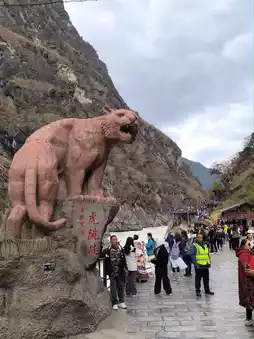 In the Tiger Leaping Gorge Scenic Area, a large bronze statue of a tiger stands at the intersection, which is very eye-catching. You can take four escalators. After going up, it is very vast and spectacular.