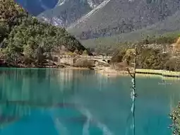 Visit Black Dragon Pool Park, a beautiful park with a crystal-clear pond and snow-capped mountains as a backdrop.