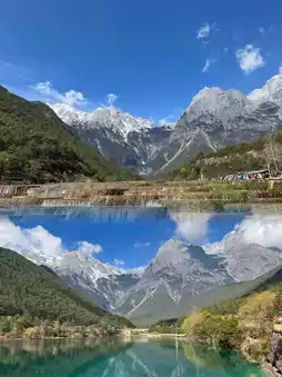 Take the Jade Dragon Snow Mountain Cable Car and easily reach the Glacier Park at 4,506 meters above sea level, where you can admire the panoramic views of the snow-capped mountains up close. Along the way, you'll encounter glaciers, snow-capped peaks, glacial lakes, and alpine plants, creating a delightful spectacle at every step. For photography enthusiasts, capture the breathtaking sight of snow-capped peaks reflected in the azure waters of Blue Moon Valley at the foot of the mountain.