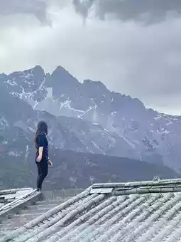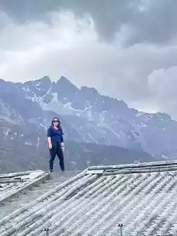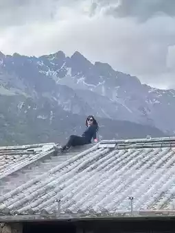The ride was slow and serene. My horse moved gently along dirt paths lined with stone houses, fields, and grazing animals. In the distance, the snow-capped peaks of Yulong Mountain rose into the sky—majestic and still. The air was cool and crisp, filled with the scent of pine and mountain soil.