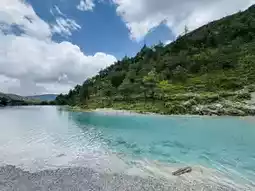 Walking along the winding trail, every turn invites pause. Tingtao Lake, Jingtan Lake, Blue Moon Lake, and Yuye Lake each possess distinct charms. The color of the water shifts with the light, sometimes like emerald, sometimes like glass, and sometimes as pale as the morning sky. Visitors pause on the bridge, take photos by the water's edge, and even witness a bride and groom in white wedding gowns, capturing the most romantic moment of their lives before the azure waters.