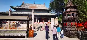 The Chongning Hall is the main hall of the Guandi Temple, named after Guan Yu was sealed as 'Chongning Zhenjun' by Song Huizong. On the moon platform in front of the hall, there is a bronze incense burner and a rectangular offering table, which were cast by the Qing people in imitation of ancient styles. On the stone steps in front of the moon platform, there are carvings of rolled grass, flowing clouds, and two dragons playing with a pearl, imitating the rules of the imperial palace. The main hall is 7 rooms wide and 6 rooms deep, with a double-eave hip roof. There are 26 huge stone-carved dragon pillars around the hall. The dragon pillars have ascending dragons, descending dragons, auspicious clouds, etc. The rough and powerful carvings contrast sharply with the delicate carvings on the pillar heads and eaves, complementing each other and each with its own beauty. As the inscription in the temple says: 'The temple steps and stone pillars, with dragons flying and soaring, the temple is magnificent, and it is the best in the world.'