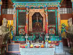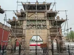 The Guan Di Temple in Jiezhou was first built in the Sui Dynasty and has a history of more than 1400 years. After the Guan Di Temple was burned down by a fire, it took eleven years to rebuild in the 52nd year of Kangxi in the Qing Dynasty (1713), and the main structure is a Qing Dynasty building. As of 2023, it is the earliest, largest, highest-ranking and best-preserved Guan Di Temple. The total area of the Guan Di Temple in Jiezhou is 220,000 square meters, divided into the main temple and the Sworn Brotherhood Garden, with the Sworn Brotherhood Garden in the south. During the Xuanhe period of Emperor Huizong of the Northern Song Dynasty, Guan Gong was included in the objects of official worship. According to the 'Song History·Volume 58·Ritual Eight', in the fifth year of Xuanhe (1123), after Guan Yu was conferred the title of 'Yiyong Wu'an King', he was worshipped in the 'Wucheng King Temple'. The lions of the Guan Di Temple in Jiezhou hold their heads high and chest out, mighty and strong; the iron men are in the image of foreigners, with high noses and deep eyes, and are foreigners who feed lions, which are exquisite castings of the Ming Dynasty. Not only does it have high value for studying the casting technology of the Ming Dynasty, but it also provides important physical evidence for studying ancient costumes. In 1988, the Guan Di Temple in Jiezhou was announced by the State Council as the third batch of national key cultural relics protection units. In 2005, the Guan Di Temple in Jiezhou was rated as a national AAAA level tourist attraction.