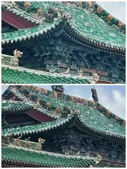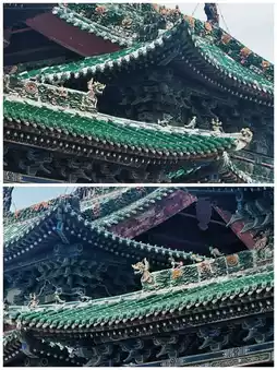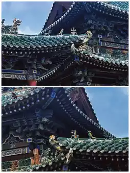 🏰 The main buildings of the three halls are arranged in a row from west to east: the Wind God Shrine, the Chi God Shrine, and the Sun God Shrine. The Chi God Shrine, also known as the Lingqing Gong Shrine, was bestowed by Emperor Daizong of Tang. The existing main building dates back to the 14th year of the Jiajing period of the Ming Dynasty, with five bays and a double-eaved hip roof.