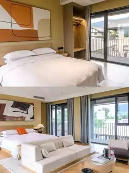 5-The hotel rooms are very spacious, the soft furnishings are very holiday-style, and it opened in 2023. The equipment is very new and there is a very deep swimming pool.