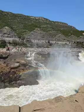 We made it to Hukou Waterfall just as the sun started breaking through a layer of morning haze, and even from a distance, you could hear it a deep, rolling thunder that got under your skin before you even saw the water. When we reached the edge, the view opened all at once: the Yellow River narrowing into a furious rush, then plunging down into the rock basin like the earth had suddenly cracked open. It wasn’t just loud it was physical. The mist hit our faces, the ground vibrated slightly under our shoes, and for a while, none of us said anything. We just watched.