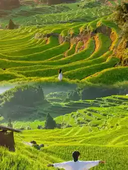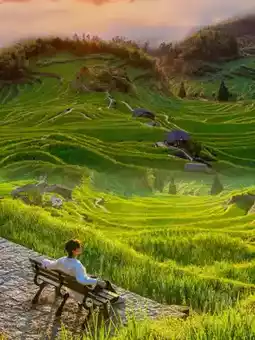 Arrive before 5 AM at the Sunrise Sea of Clouds Viewing Platform (ticket 80 RMB) and witness the stunning embrace of terraces and mist!🌅