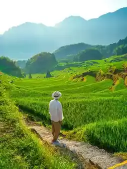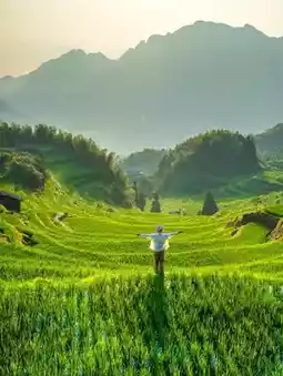A thousand-year-old ancient village hidden in the terraced valley, like amber frozen in time. The winding bluestone paths, babbling streams running through the village, and quaint earth houses arranged neatly are full of rich historical charm.
