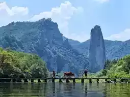 "The world's number one bamboo shoot," a check-in spot featured in TV dramas "Chinese Paladin" and "The Journey of Flower." On clear, windless days, the lake surface is like a mirror, making the "Dǐnghú Peak reflection" photo absolutely stunning!