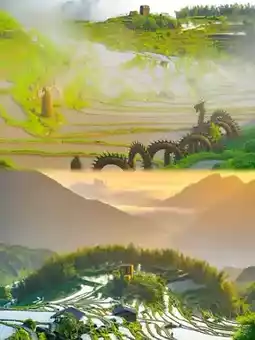 👉 Nine-Bend Cloud Ring: The stunning centerpiece for sunrise and sea of clouds🌅! Early morning mist drifts over golden rice waves, like stepping into a fairyland☁️, every shot is a masterpiece📸!