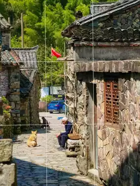 - Must-shoot scenes: At the stone alley entrance, red maple branches peek out from the eaves; framing this shot highlights the beauty of the ancient village blending with autumn scenery; villagers’ bamboo trays drying corn and chili peppers are richly colorful and vivid, like a three-dimensional oil painting; in the early morning, the creek is clear as a mirror, reflecting the ancient bridge and colorful forest, creating an excellent mirror effect.